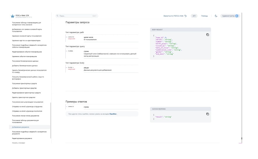 API – интерфейс доступен бесплатно для всех пользователей системы PERCo-Web.