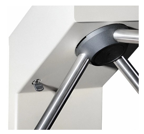 В турникет встроен замок механической разблокировки, позволяющий, в случае необходимости, с помощью ключа разблокировать его (обеспечить свободный поворот преграждающих планок).