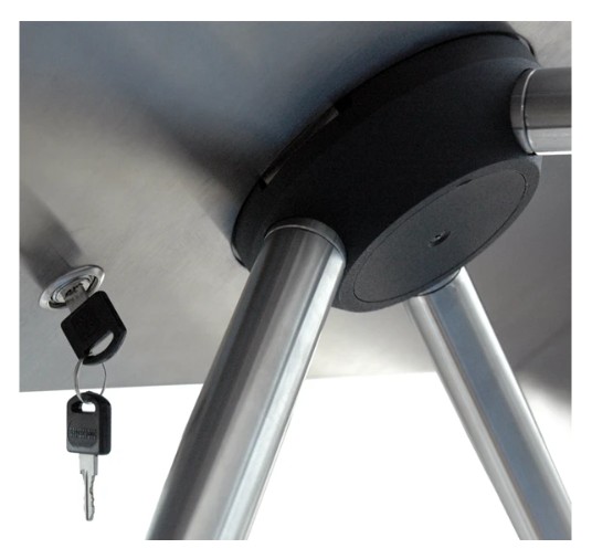 Кроме этого, в турникет встроен замок механической разблокировки, позволяющий, в случае необходимости, с помощью ключа разблокировать его (обеспечить свободный поворот преграждающих планок).
