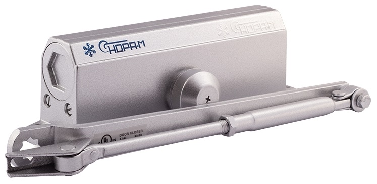 Универсальный дверной доводчик уличный морозостойкий, предназначен для дверей левого и правого открывания. Устанавливается на тяжёлые входные двери весом от 80 до 120 кг. Данная модель разработана с учетом особенностей эксплуатации в российских условиях. Диапазон рабочих температур от –45° до +60°C.