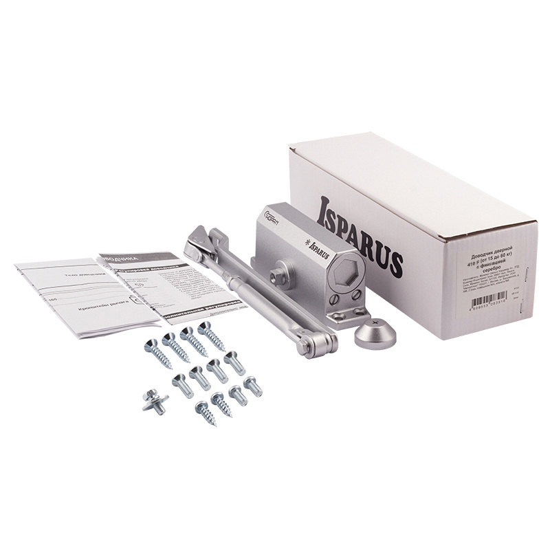 НОРА-М 410 F ISPARUS фиксация (от 15 до 60кг) (серебро) доводчик морозостойкий; материал корпуса силумин; от -45 °С до +60 °С.