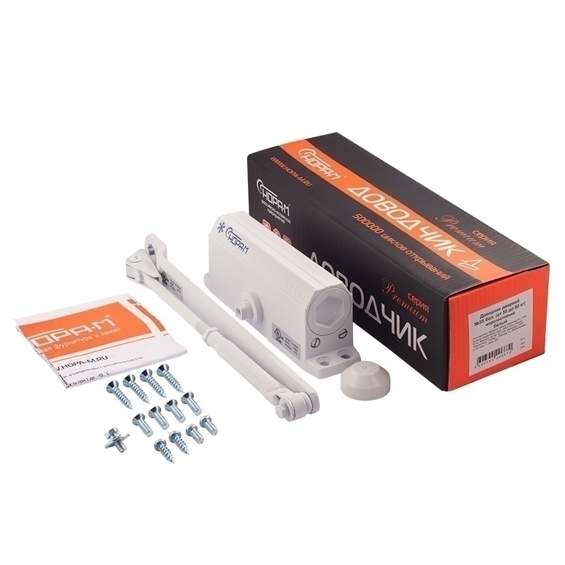 НОРА-М №3S F фиксация бол. (до 80кг) доводчик морозостойкий (белый); длина рычага от 260 до 330 мм; материал корпуса силумин; от -45 °С до +60 °С; длина 186 мм.