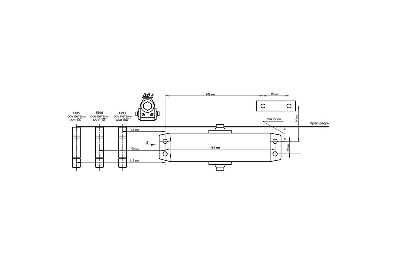 Доводчик DC-100 NOTEDO (серебро) для внутренней установки; гидравлический; серебро; вес двери до 120 кг; морозостойкость до -38 °С; EN3-5; расстояние между креплениями 169 м.