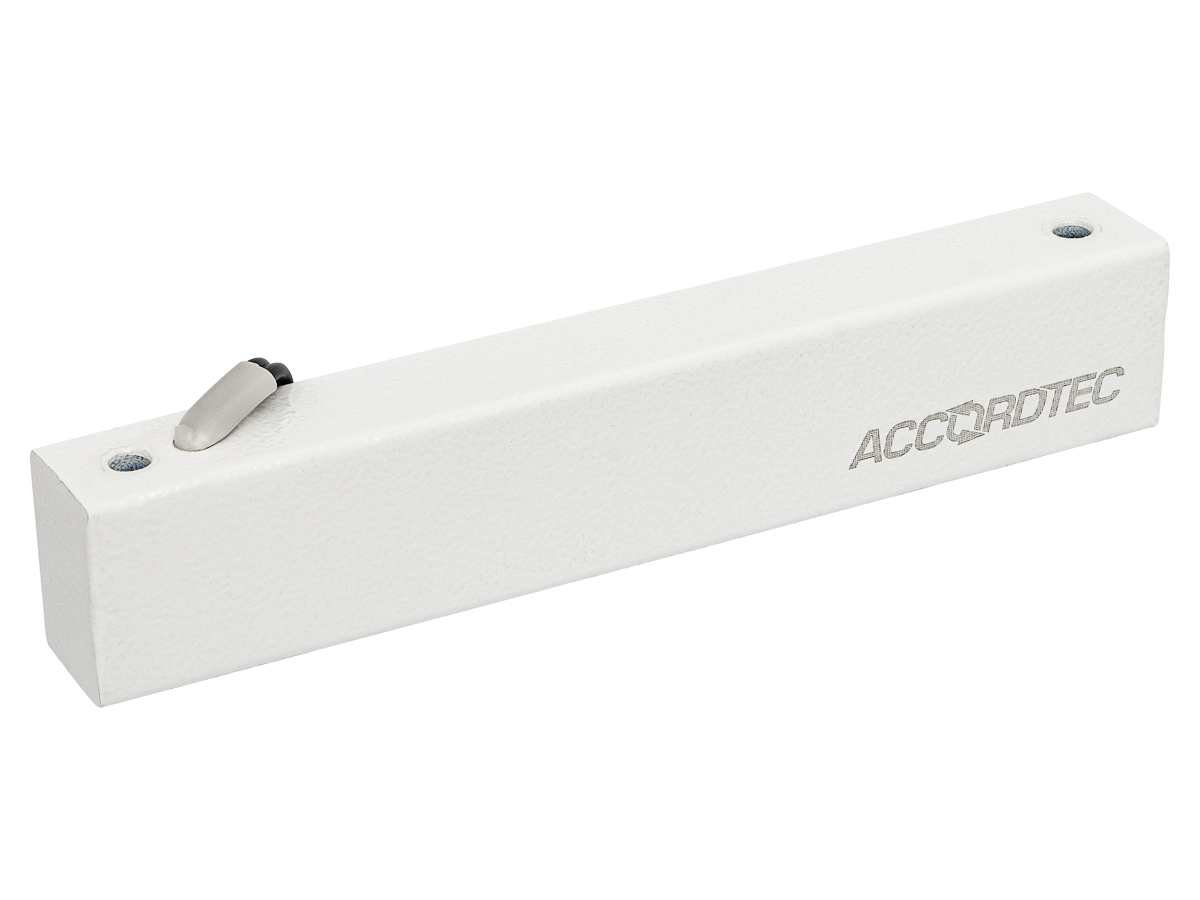ML-100K с уголком (белый) замок электромагнитный AccordTec; 12V DC; не более 0,45 A; металл; IP67; -40...+40°С; 180x33x23 мм; 600 г.