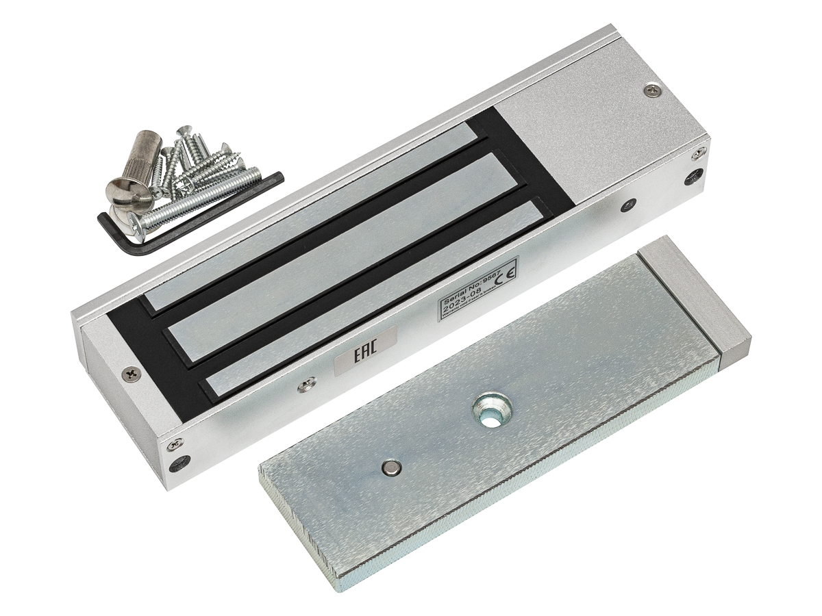 Электромагнитный замок, 12V/24V DC, не более 0,5 A, усилие 500 кг, габаритные размеры 266×67×39 мм. офисный дизайн,