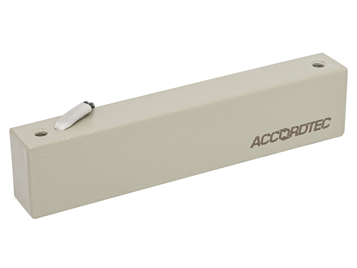ML-180K с планкой (серый) замок электромагнитный AccordTec; 12V DC; 0,4 A; усилие удержания 200 кг; IP67; -40°С…+40°С; 180x40x25 мм; 800 г.