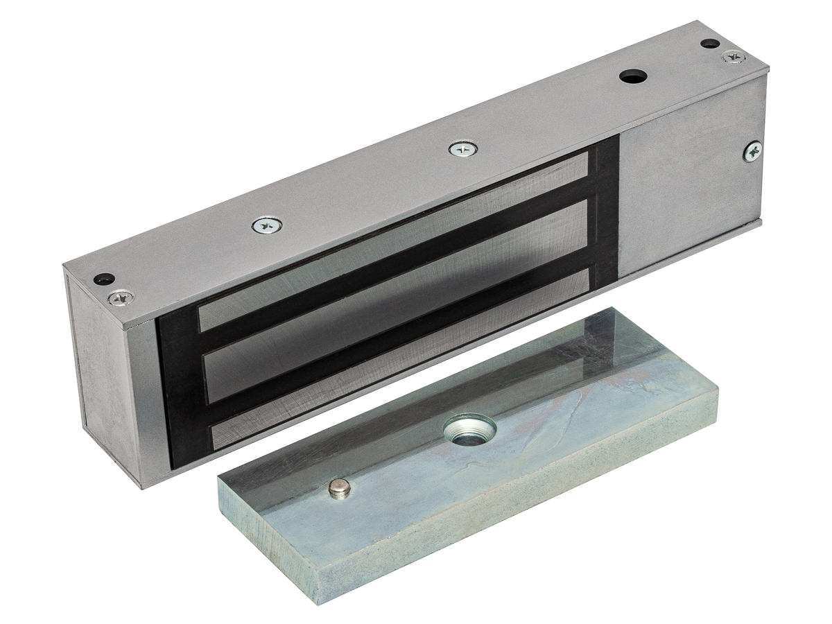 Электромагнитный замок.Питание 12V DC, потребление 0.65A, усилие 500 кг, шлейф считывателя до 20м, 500 ключа доступа, 10 блокирующих ключей, комплектация - без мастер-ключа (программируется пользователем), режим Accept (режим свободного прохода с автоматической записью ключей), без контактора считывателя, время открывания 1-255 сек, схема перемагничивания, выход МДП-тр., защита входа, энергонезависимая память, свет. и звук. индикация. Уголок в комплекте.Механический компенсатор эффекта остаточной намагниченности на якоре замка Габаритные размеры: 267х70х45 мм. Масса брутто 5500г.Цвет серый .Темп.диапазон -40°С...+40°С.