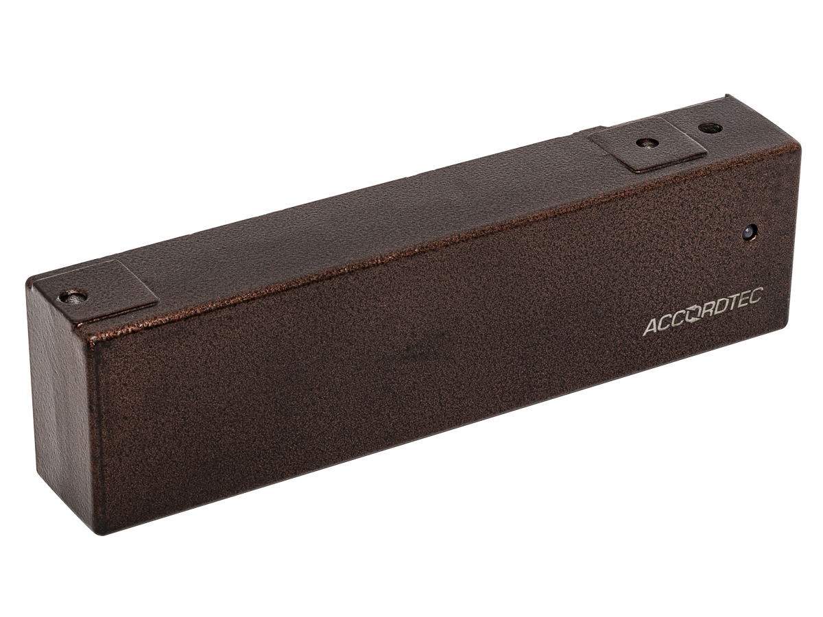 ML-194.03K с уголком (коричневый) замок электромагнитный AccordTec; 12V DC; потребление 0.65A; усилие 500 кг; время открывания 1-255 сек; металл; -40°С…+40°С; 270х75х45 мм; 5600 г.