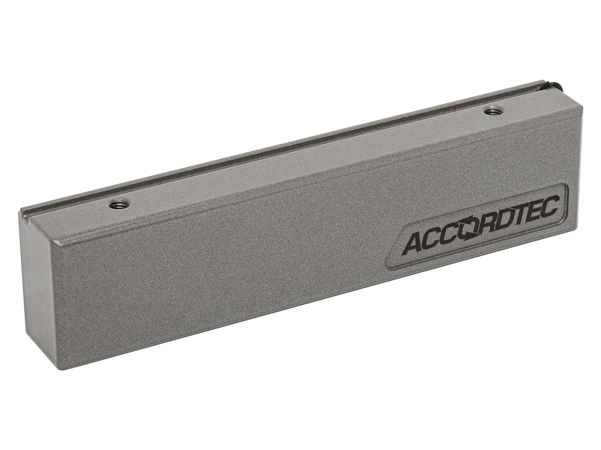 ML-200K Premium Grey (cерый) замок электромагнитный с уголком AccordTec; удержание 200 кг; влагозащищенный; 11.5-14.5 В; IP67; металл; -50°С...+50°С; 155х38х24 мм; 1230 г.