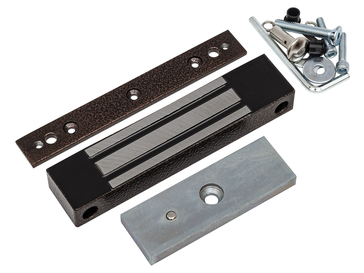 ML-180KB с планкой (коричневый) замок электромагнитный AccordTec; 12V DC; не более 0,4 A; усилие 200 кг; IP67; металл; -40°С…+40°С; 180x40x25 мм; 800 г.