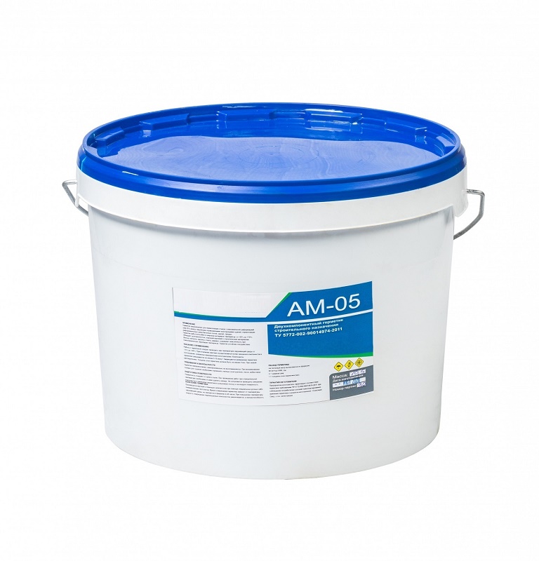 Двухкомпонентный герметик АМ-05 холодного отверждения разработан на основе тиолсодержащего AR-полимера. Состоит из двух компонентов - основной и отверждающей паст. После смешивания компонентов образуется тиксотропная, легко наносимая паста. После отверждения образуется эластичный резиноподобный материал с высокими деформационными и прочностными свойствами, стойкостью к вибрациям и атмосферным воздействиям, сохраняющий хорошую адгезию ко всем строительным материалам на протяжении срока эксплуатации.