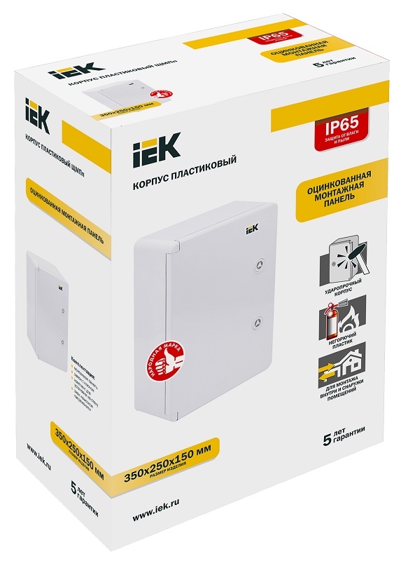 MKP93-N-352515-65 корпус пластиковый ЩМПп IEK; 230/400 В; 50 Гц; 100 А; IP65; нагрузка 20 кг; АВС-пластик; -45…+80 °C; IP65; 250х350х150 мм; 2,2 кг.
