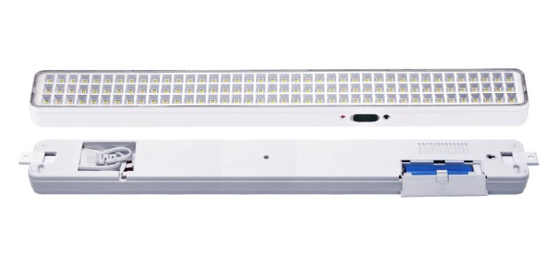 Светильник аварийного освещения светодиодный непостоянного действия; 120 SMD светодиодов, мощность источника света 5.5 Вт, световой поток 650 Лм; U-пит.187...242В, P-потр.2.2 Вт, встроенный Li-ion АКБ 3.7 В, 2200 мАч, защита от глубокого разряда, время свечения - до 6 часов; t-раб.0...+40°С, 480х55х30 мм, 0.36 кг