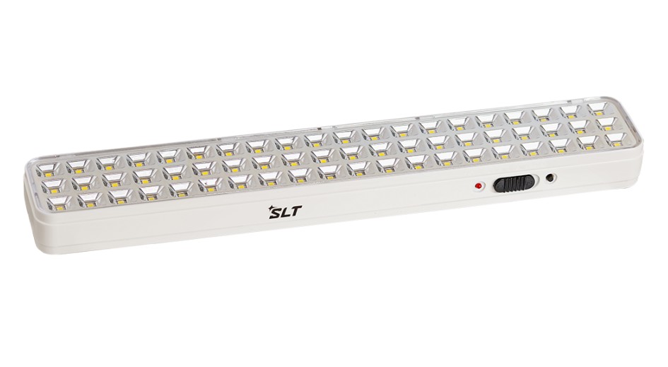 KL-60А светильник аварийного освещения SLT; питание от сети переменного тока напряжением 187-242 В, частотой 50 Гц; сила света 60х2500 мКд; мощность источника света 3 Вт; IP41; 0…+40 °C; 340х55х30 мм; не более 0,25 кг.