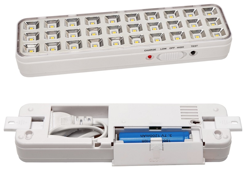 KL-30 аварийный светильник светодиодный непостоянного действия, 187-242В, 30 сверх ярких светодиодов с длительным сроком службы, световой поток 80 Лм, 1 Li-ion аккумулятор 3.7 В, 1200 мАч, время свечения - до 3 часов, 0...+40°С, 202х55х30 мм, 0.17 кг.
