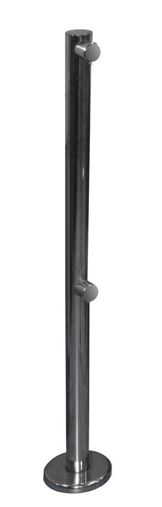 SOT-1-25M Стойка ограждения торцевая Сибирский Арсенал; торцевая стойка, представляет собой вертикальную трубу с основанием и двумя муфтами для присоединения труб диаметром 32 мм; высота 1 м, диаметр 50 мм, цвет – хром.