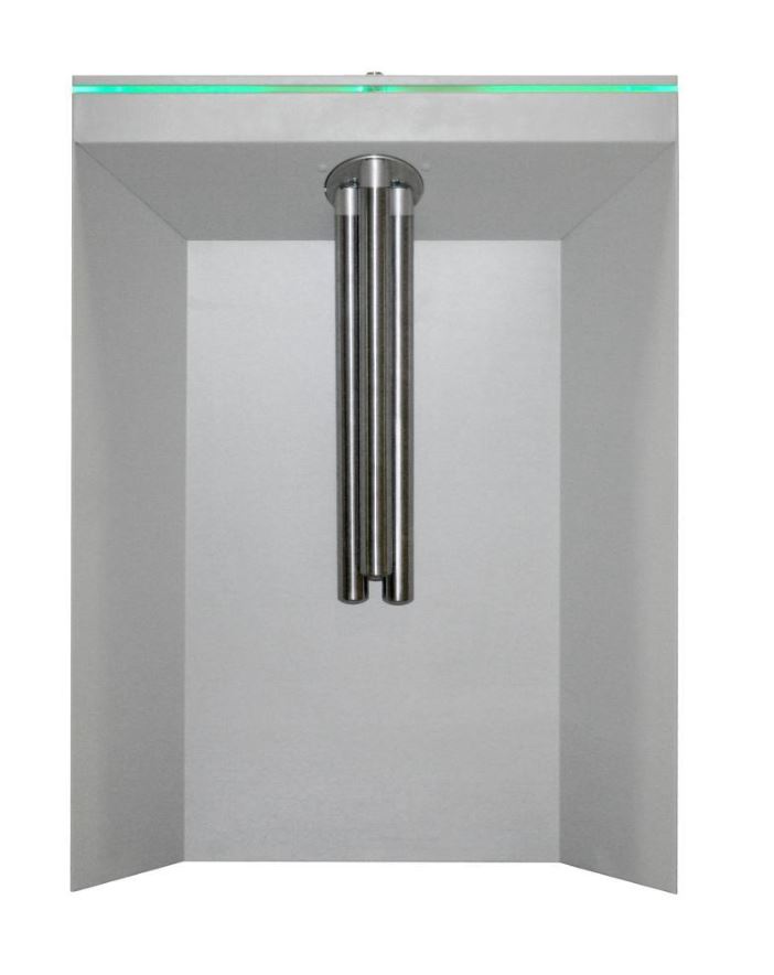Наличие режима «Антипаника» – все преграждающие планки турникета опущены в вертикальное положение – возможность быстрой эвакуации. Режим включается как с ручного дистанционного пульта управления, так и непосредственно при нажатии на центральный фиксатор трипода.