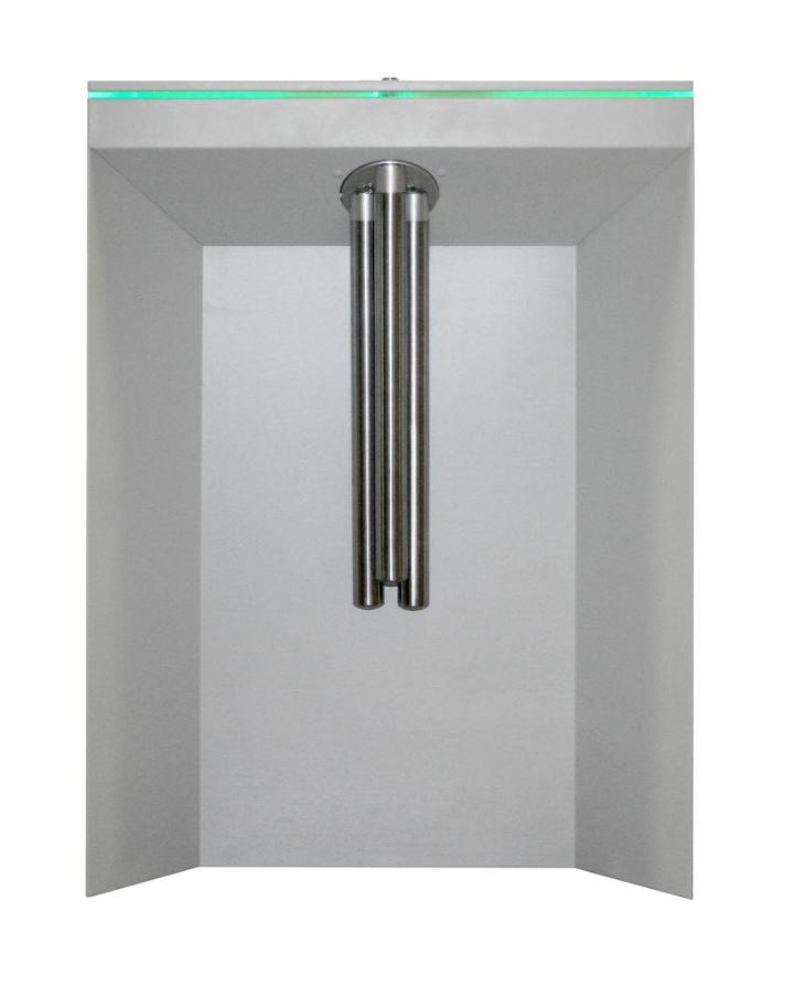 Наличие режима «Антипаника» – все преграждающие планки турникета опущены в вертикальное положение – возможность быстрой эвакуации. Режим включается как с ручного дистанционного пульта управления, так и непосредственно при нажатии на центральный фиксатор трипода.