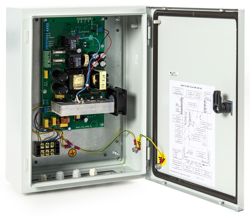 SKAT-V.12DC-18 исп.5М уличный источник бесперебойного питания; 12 В, 18 А; уличное исполнение; класс защиты IP65; металлический корпус; регулируемый ток заряда АКБ; термокомпенсация тока заряда АКБ; АКБ — внешний; 1 шт. от 26 до 200 Ач; 5 информационных выходов о состоянии источника; электронная защита от перегрева; КЗ выхода и АКБ; кнопка отключения нагрузки; диапазон входного напряжения — 170–250 В; IP65; -40…+40 °С; 300х155х430 мм; 7,7 кг.