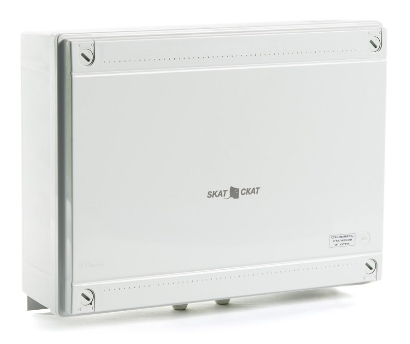 SKAT-V.24/220AC источник бесперебойного питания для CCTV; 2 выхода переменного напряжения 220 В и 24 В суммарно 150 ВА; корпус под 2 термостата АКБ 12 Ач; дистанционное сообщение о переходе на резерв и о разряде АКБ; защита АКБ; защита нагрузки; IP56; -40…+40; 418х335х140 мм; 4,95 кг.