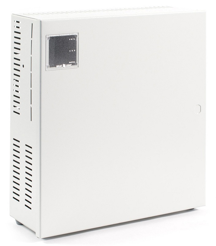 СКАТ-1200У2 источник вторичного электропитания резервированный; 12В, 10А; кратковременно и в режиме резерва до 12А; корпус под два АКБ 26 Ач; диапазон входного напряжения 170—250В; соответствует ФЗ 123 и ГОСТ Р 53325-2012; -10 до +40°С; 425х395х155 мм; 5,7 кг.