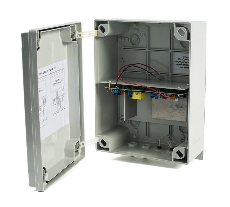 12 В 4 А (без учета тока на подогрев акк.) уличное исполнение, корпус под акк 7-12Ач, IP56, t-раб.-40...+40°С