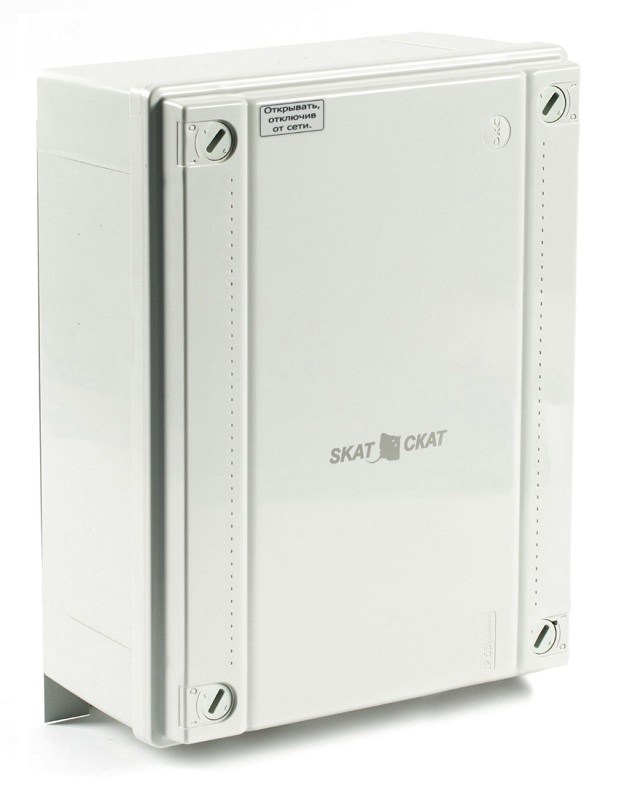 СКАТ-1200 (исп.5) источник вторичного электропитания резервированный; 12 В 4 А (без учета тока на подогрев акк.) уличное исполнение; корпус под акк 7-12Ач; световая индикация режимов работы, защита от короткого замыкания, защита аккумулятора от глубокого разряда; IP56;-40...+40°С; 335х240х145 мм; 2,1 кг.
