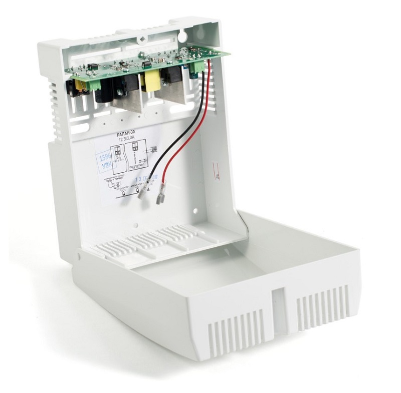 ББП РАПАН-30П источник вторичного электропитания резервированный; 12 В, 3 А; пластиковый корпус; под АКБ 7 Ач; световая индикация режимов работы; защита АКБ, защита выхода от КЗ и перегрузки ; IP30; -10..+40°С; 169х210х103 мм; 0,4 кг.