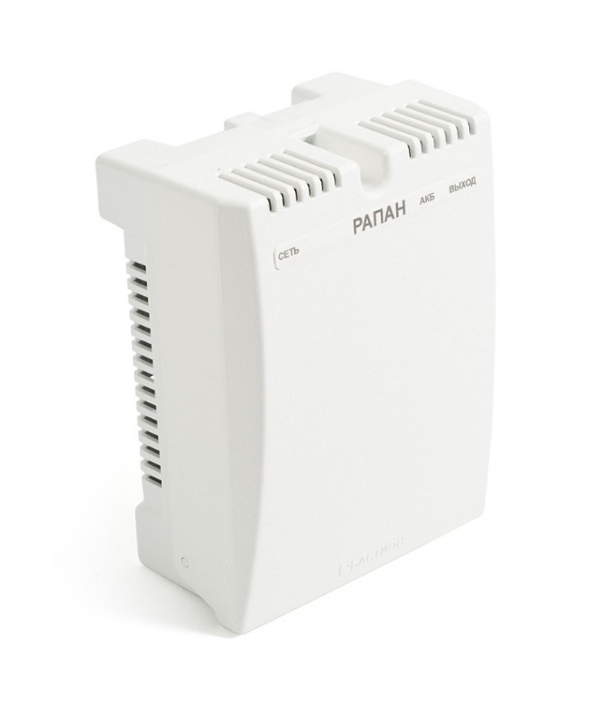 ББП Рапан-10П исп. 1.2 источник вторичного электропитания резервированный; пластиковый корпус; под АКБ 1,2 Ач; защита АКБ; защита выхода от КЗ и перегрузки; IP20; -10...+40°С; 128х169х85 мм; 0,3 кг.
