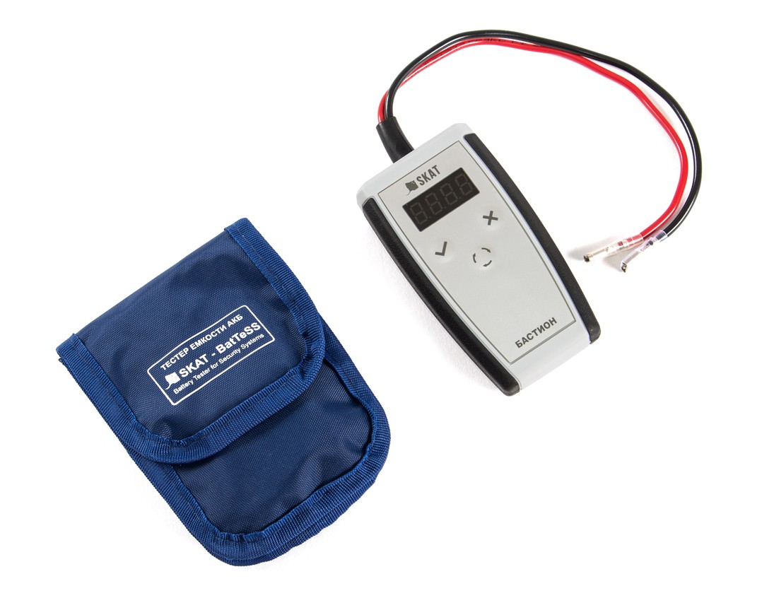 Автоматический тестер ёмкости аккумуляторных батарей SKAT - BatTeSS (Battery Tester for Security Systems) предназначен для оперативной оценки технического состояния и остаточной емкости свинцово-кислотных АКБ с номинальным напряжением 12 В и номинальной емкостью 1,2—12 Ач, которые применяются в системах охранно-пожарной сигнализации и видеонаблюдения.