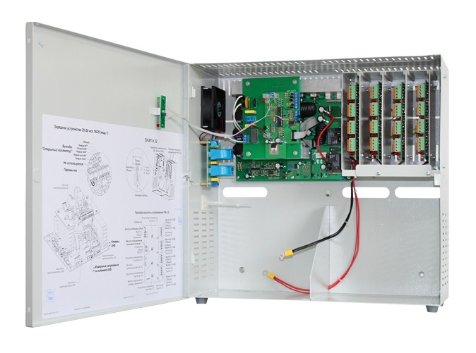 SKAT-V.32 источник бесперебойного питания для CCTV; 32 выхода по 0,5 А или 16 выходов по 1 А; регулировка выходного напряжения, регулируемый ток заряда АКБ; максимальный ток по всем выходам — 14 А; корпус под 2 АКБ 40 Ач; 5 информационных выходов о состоянии источника; независимая регулировка выходного напряжения по каналам; фильтрация помех по каждому каналу; защита от КЗ и перегрузки по каждому каналу; IP20; 0…+40; 460х438х192 мм; 10,3 кг.