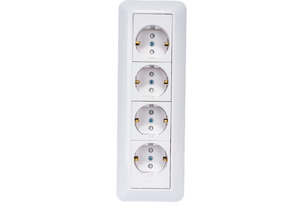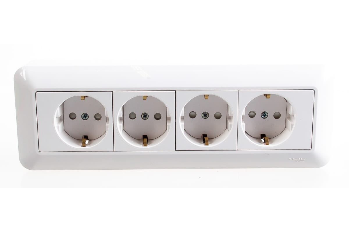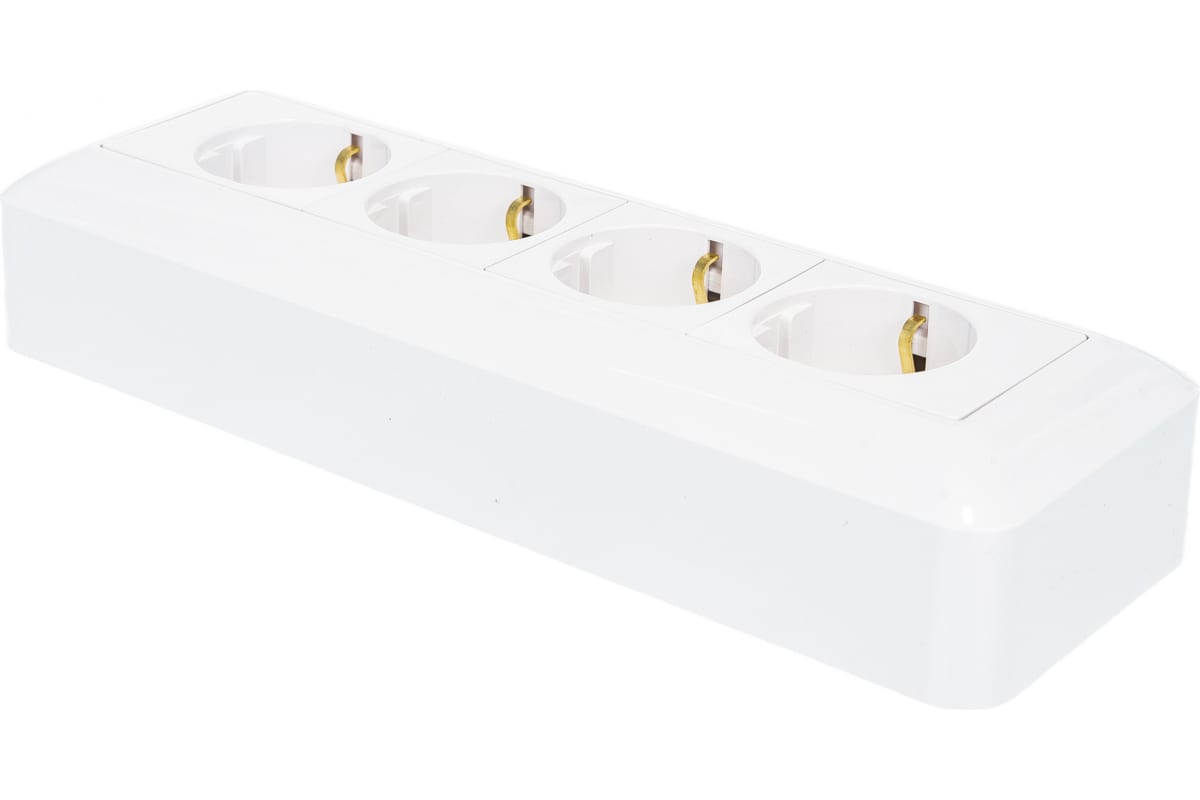 RA16-411M-BI SE Wessen Прима наруж Бел Розетка 4-я с/з с защитными шторками 16А; монтажная пластина (в сборе); IP20; 238х82х43 мм; 0,37 кг.