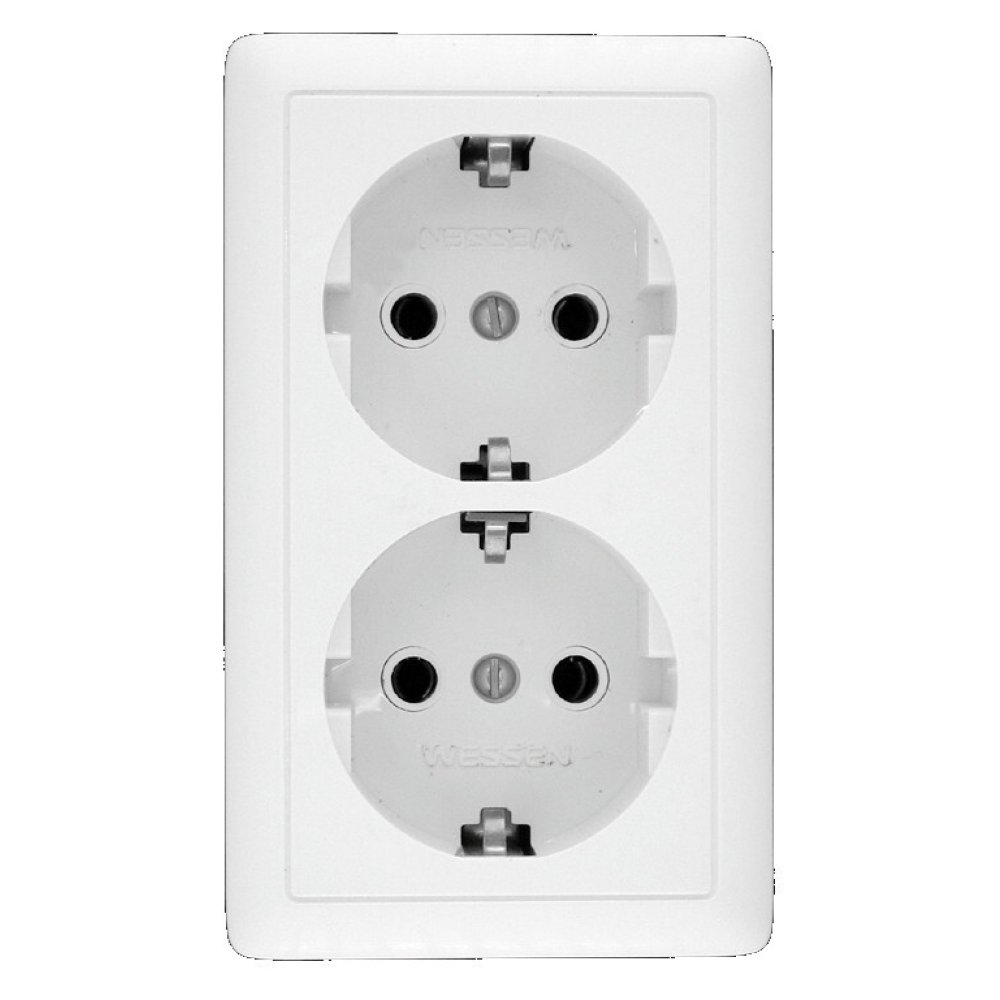 RA16-238-B Wessen ХИТ розетка двойная наружная с заземлением без шторок Systeme Electric; 16А; 250В; пластик; цвет белый; IP20; 102х61х42.9 мм.