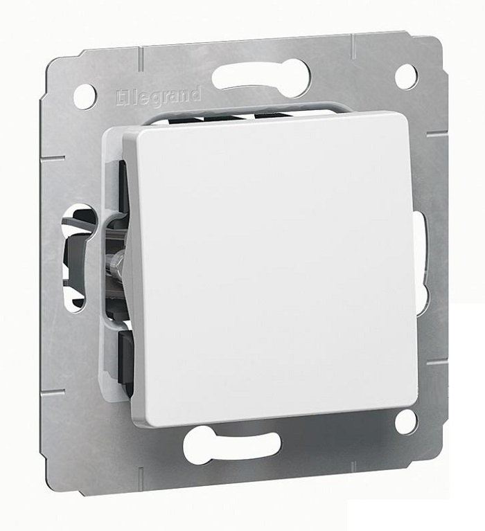 LEG 773657 переключатель одноклавишный, на 2 направления, Cariva, автоматические клеммы, 10 А, 250 В, белый; рамки продаются отдельно.