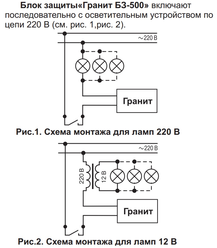 Гранит 500 блок защиты ламп; 220 В, 50 Гц; -40...+40°С.