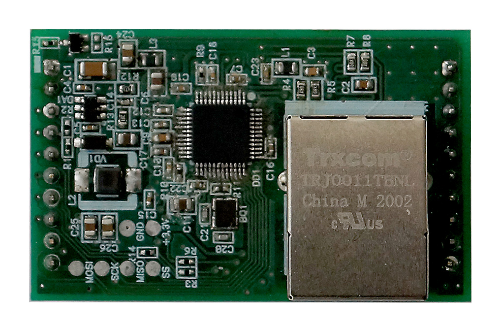 Модуль позволяет установить проводное подключение контроллера к сети Интернет через локальную вычислительную сеть на объекте охраны. Обмен данными между контроллером и станцией мониторинга STEMAX осуществляется с использованием собственного стека протоколов TCP/IP. Безопасность передачи данных обеспечивается применением собственного протокола шифрования MSRV.