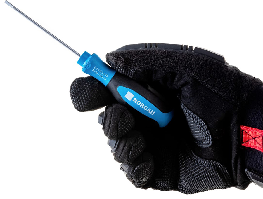 Отвертка N150-2.5х75 NORGAU; отвертка с двухкомпонентной рукояткой; хромовое покрытие наконечника; 162 мм; 0.029 кг.