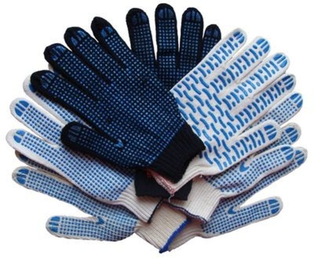 Перчатки ХБ с нанесением пвх (точка), различных цветов.