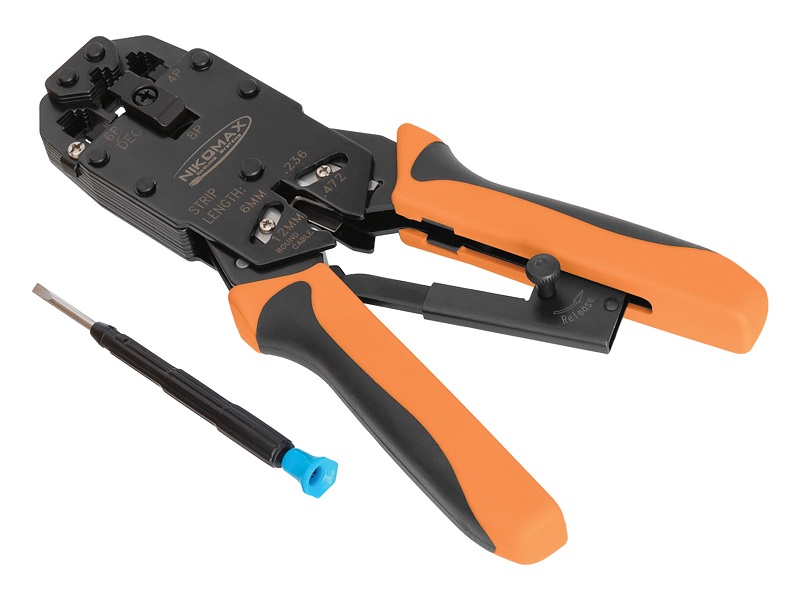 NMC-2008AR устройство обжимное; черно-оранжевый; RJ45/8P8C, RJ12/6P6C,RJ11/6P4C, 4P4C, 4P2C; от -10 до +50 °C.