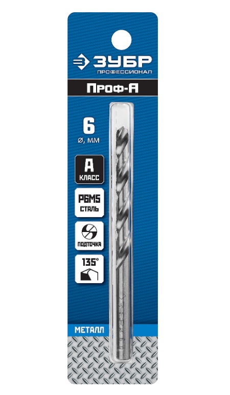 ЗУБР Ø 6,0 x 93 мм, класс А, Р6М5, сверло по металлу 29625-6 Профессионал. Качественное и точное сверло с большим ресурсом. Для сохранения инструмента в рабочем состоянии, а так же предусмотренной гарантией завода изготовителя, производтель рекомендует использовать сверло строго по назначению.