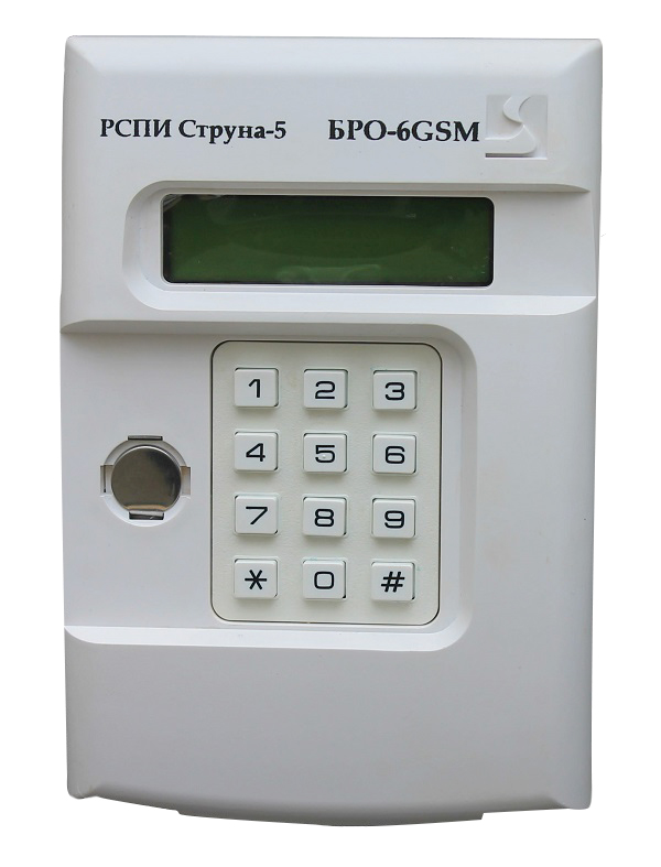 БРО-6-GSM блок радиоканальный объектовый; основной канал связи GPRS; 6 ШС; GSM 1900/1800/900 MHz; до 2-х SIM карт; 2 программируемых релейных выхода типа открытый коллектор; 10,5 — 15 В, 10 В·А; 150х110х35 мм.