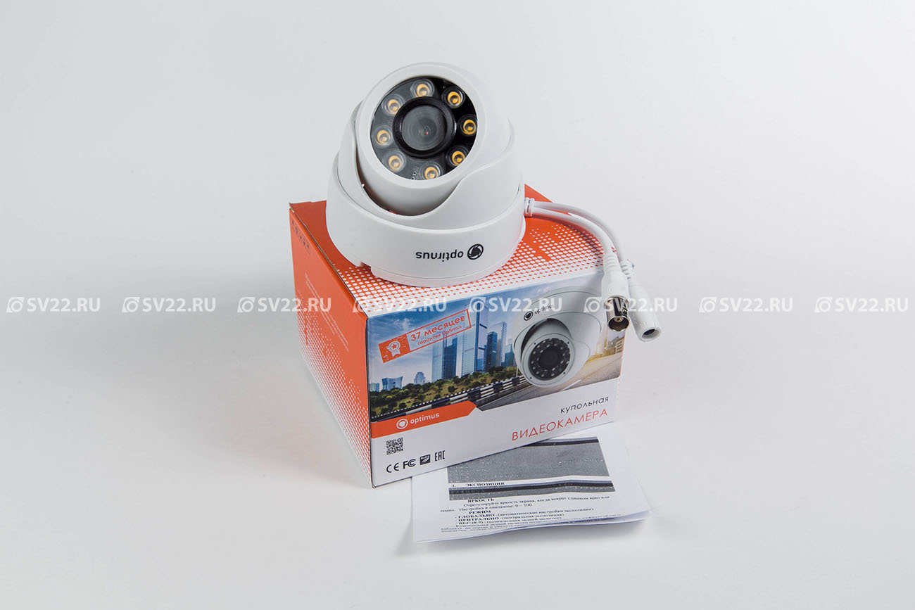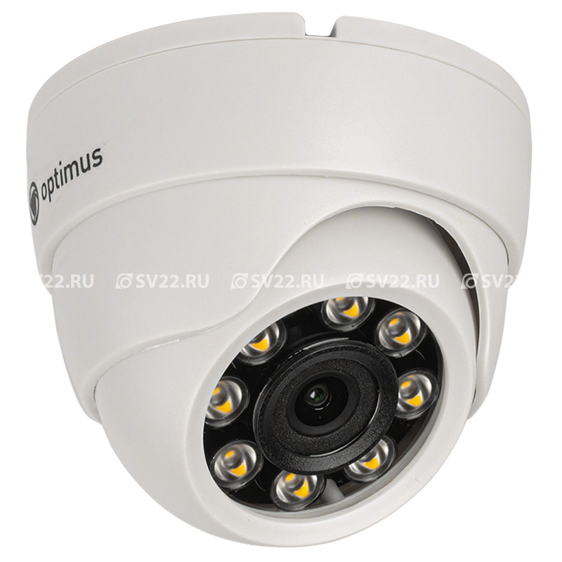 AHD-H022.1(2.8)F внутренняя камера видеонаблюдения Optimus; 1/2.9" CMOS GC2053 2.1Мп; 1920х1080 (1080P); AHD/TVI/CVI/CVBS; объектив фиксированный 2.8 мм; Ик-подсветка 20 м, 8 диодов; D-WDR; корпус пластик; IP20; цвет белый; от -10 °С до +50 °С; 90 х 85 мм; 156 г.
