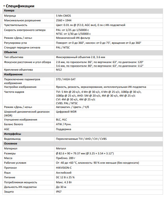 видеовыход: 1 х HD-TVI/AHD/CVI/CVBS