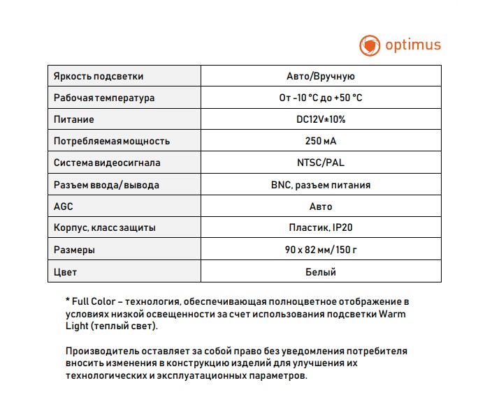 Расшифровка: *Full Color – технология, обеспечивающая полноцветное отображение в условиях низкой освещенности за счет использования подсветки Warm Light (теплый свет).