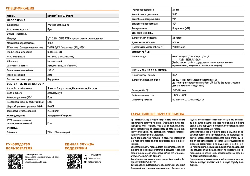 Видеокамера Novicam LITE 23 производства компании Novicam создана на основе новейших технологий аналогового сигнала высокого разрешения - TVI, AHD, CVI. Данные технологии сочетают в себе легкость и удобство использования аналоговых видеокамер и высокое разрешение цифровых, позволяют передавать видеосигнал на расстояние до 500 метров и дает возможность модернизировать оборудование на объекте до Full HD разрешения, используя существующие коммуникации, без необходимости прокладки новых кабелей.