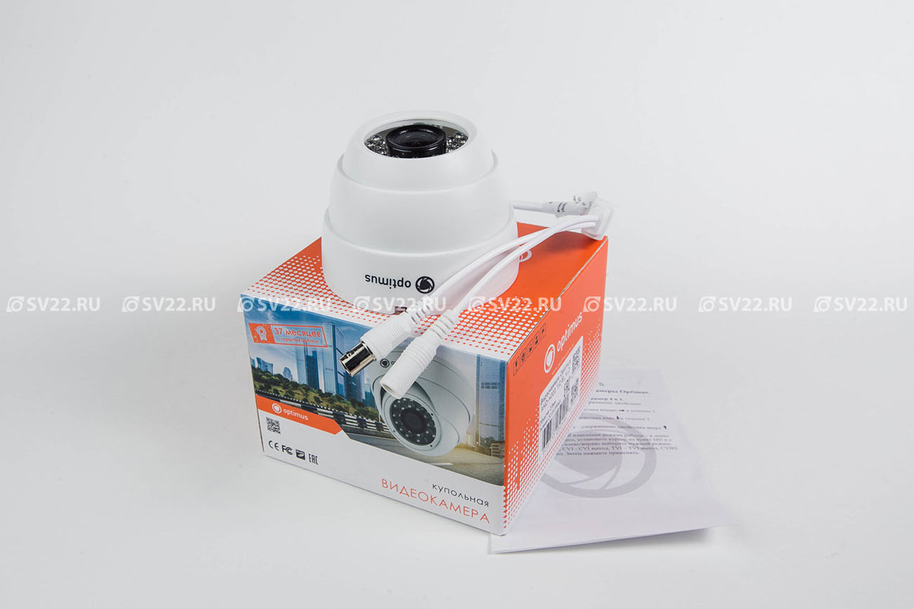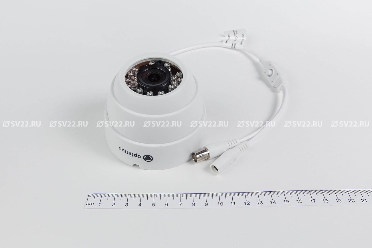 AHD-H022.1(2.8)_V.2 внутренняя камера видеонаблюдения Optimus; 1/2.9" 2.1Мп CMOS Sony IMX323; 1920х1080; объектив фиксированный 2.8 мм; ИК-подсветка 20 м, 24 ИК-диода; DNR: 2D/3D; D-WDR; корпус пластик, белый; IP20; -20 °С +50 °С; 90х85 мм; 156 г.