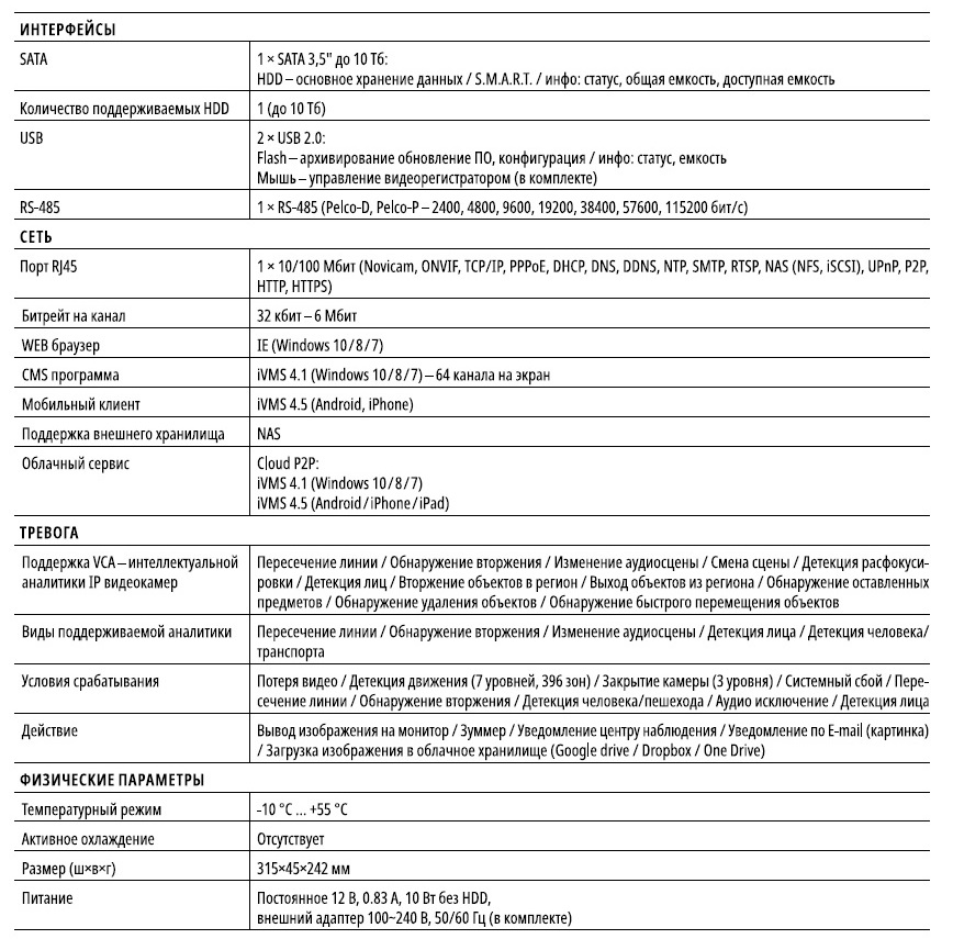 Порт RJ45 1 × 10/100 Мбит (Novicam, ONVIF, TCP/IP, PPPoE, DHCP, DNS, DDNS, NTP, SMTP, RTSP, NAS (NFS, iSCSI), UPnP, P2P, HTTP, HTTPS)