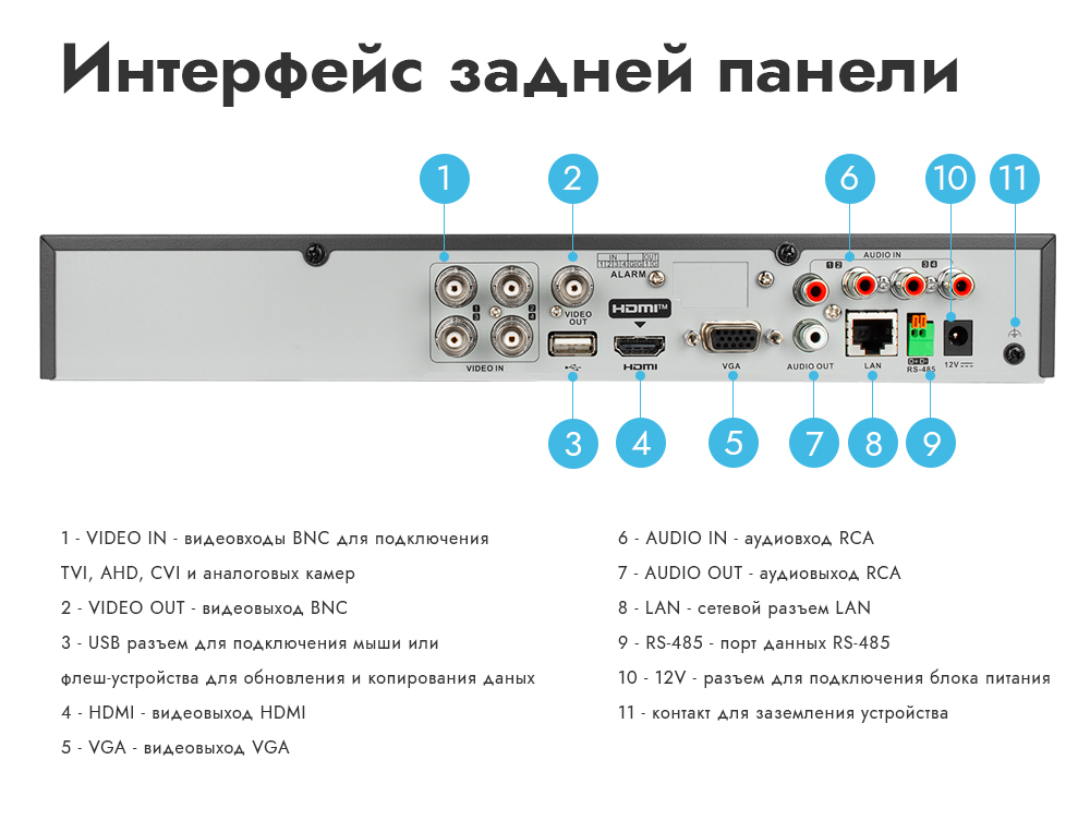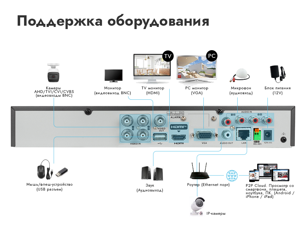 Видео в разрешении до 4Мп (TVI/AHD/CVI) и 6Мп (IP)