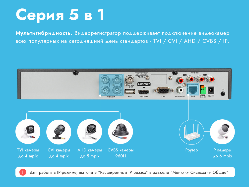 Серия 5 в 1 - Поддержка TVI, CVI, AHD, CVBS и IP видеокамер