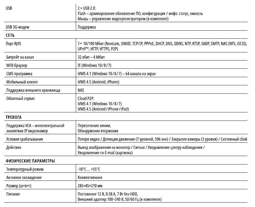 Порт RJ45 1 × 10/100 Мбит (Novicam, ONVIF, TCP/IP, PPPoE, DHCP, DNS, DDNS, NTP, RTSP, SADP, SMTP, NAS (NFS, iSCSI), UPnP™, HTTP, HTTPS, P2P)